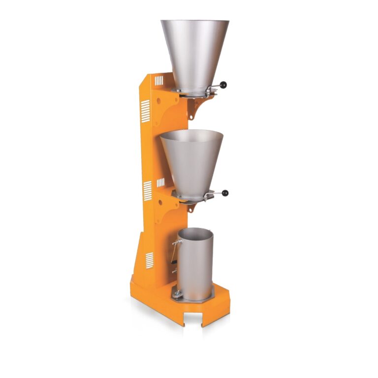 - The apparatus consists of two conical hoppers attached above a cylinder, that are aligned on a robust steel frame.