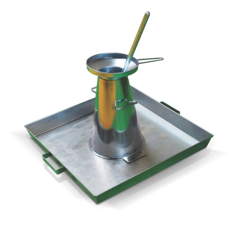 - Made of metal not readily attacked by cement paste and having a collar to enable the funnel to be located on top of the mould